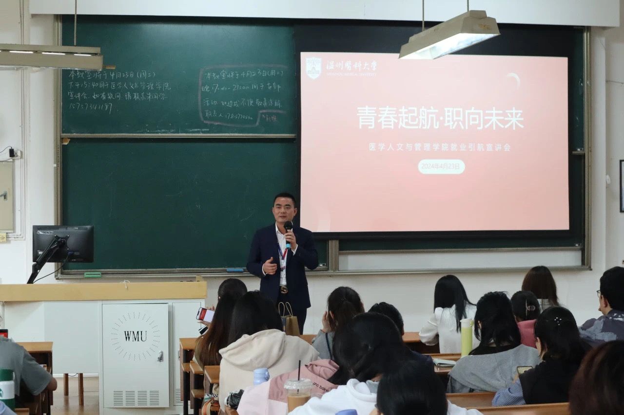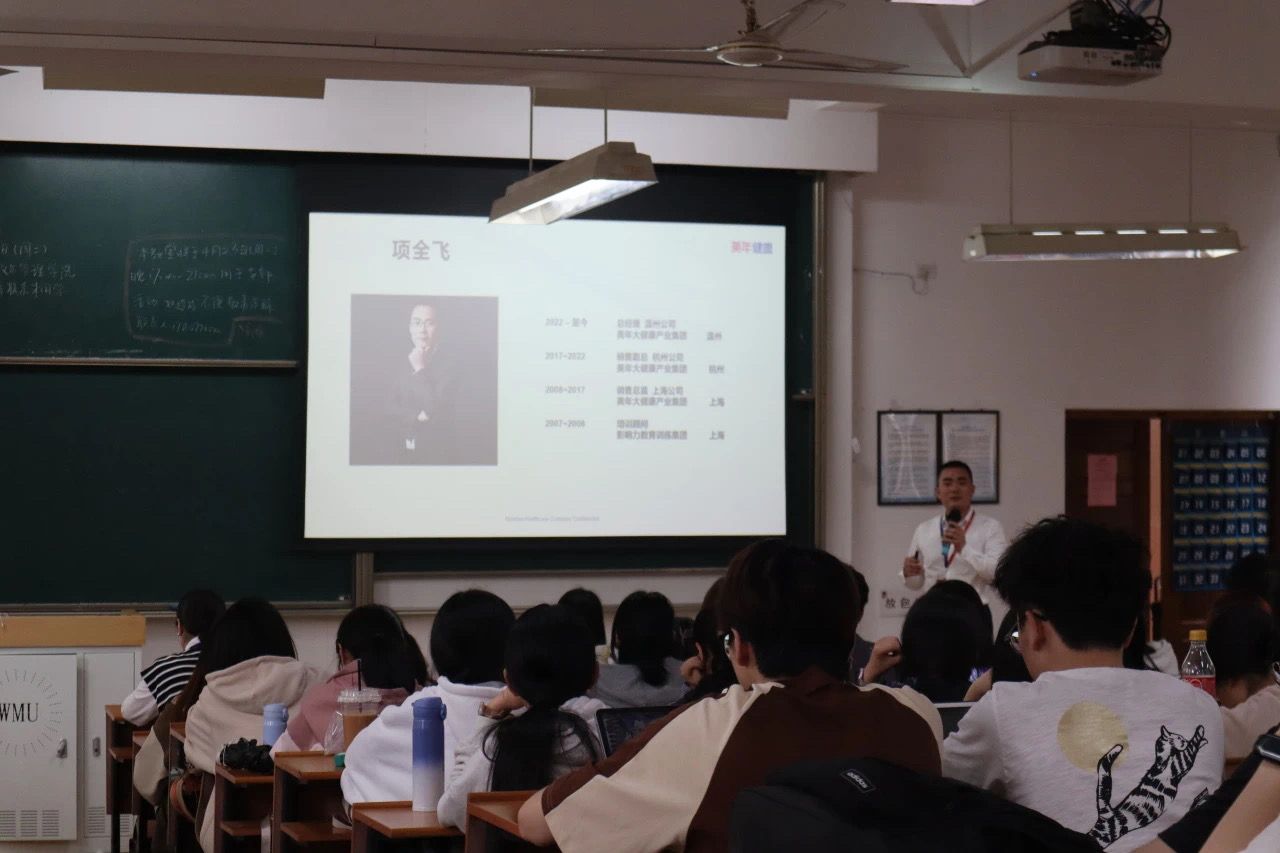 宣讲伊始,项全飞总经理从美年健康的发展历程讲起,介绍了聚焦科研应用的四大方向、创新产品、AIGC科研与成果转化等,帮助在校员工了解当前社会就业主流,让文管学子对就业新方向新动态有了更好的认识,为以后选择就业积累了良好的储备知识。