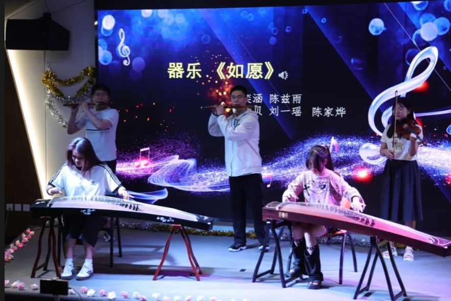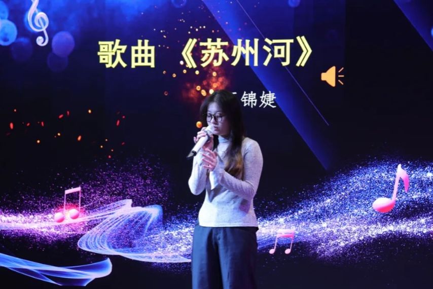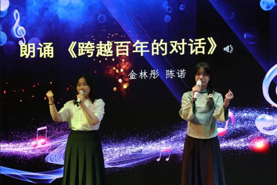 器乐表演《如愿》,歌曲演唱《苏州河》《三人游》《那个女孩》《天黑黑》《水中花》《遗憾也值得》更是抓住在场所有人的耳朵,每个音符和旋律都令人流连忘返,带着大家一起感受青春中暗恋、遗憾、捉摸不透的情绪,牵动着大家的心。还有朗诵《跨越百年的对话》让我们一起坐着时光机,和百年前的先辈交谈。