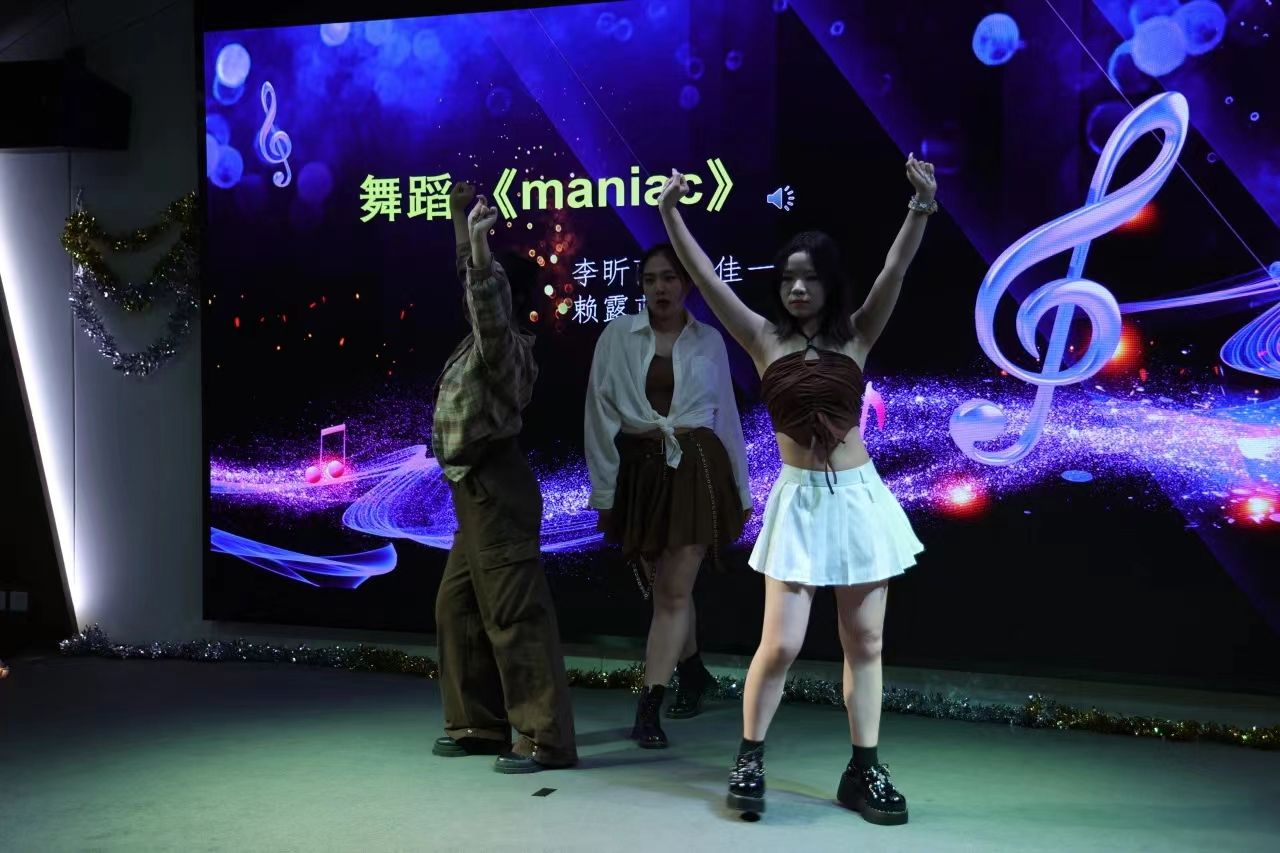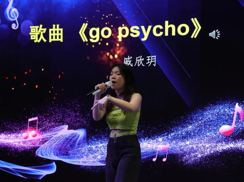 在一段段热烈的舞蹈表演之后,戚欣月同学为我们带来了魔性洗脑的《go psycho》,陈仕韩同学的《我的歌声里》让听众如沐春风,还有主持队同学们将《雪distance》的歌词改编成朗诵后竟然也别有一番风味。