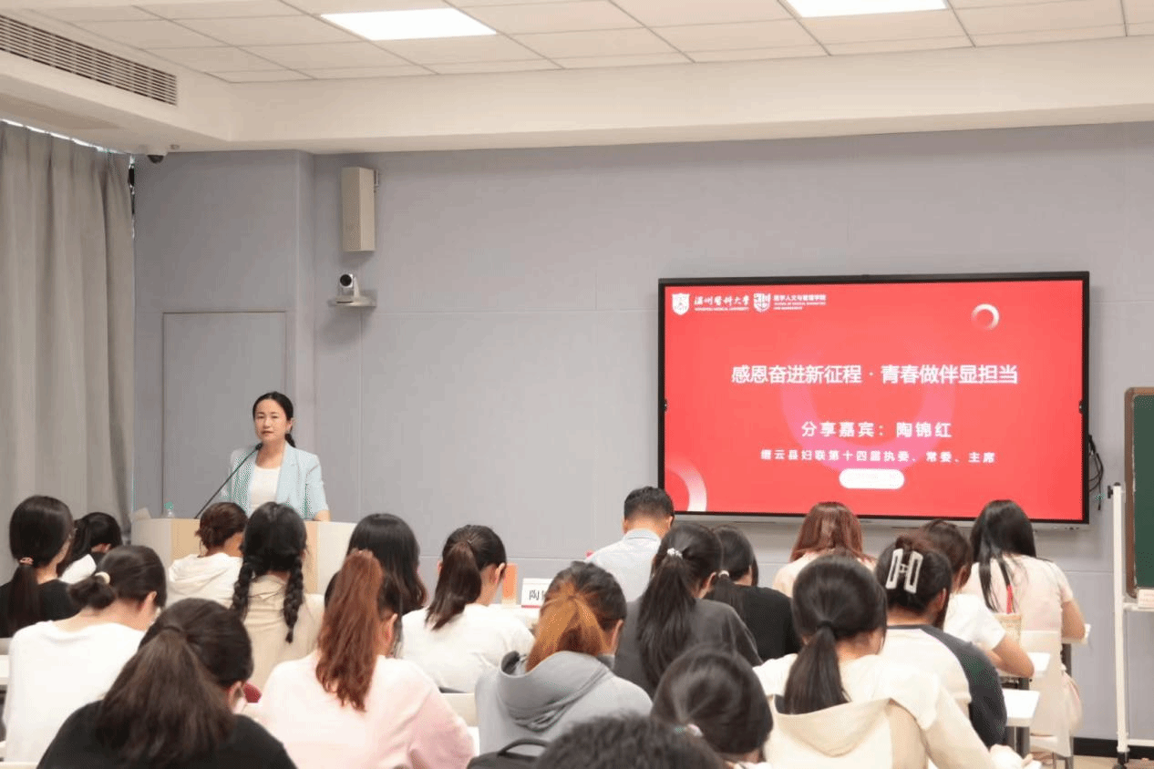 陶锦红学姐以“感恩奋进新征程,青春作伴显担当” 为主题,结合自身十多年来的职业生涯,为同学们带来了丰富且实用的经验分享。她鼓励同学们提高政治站位,紧跟时代步伐。接着,她从抓牢学习、做好职业生涯规划以及就业选择等方面,展开了细致的阐述与分享,指出要将学习作为贯穿人生的主旋律,提醒同学们要明确自己的目标,结合自身优势和兴趣,制定切实可行的职业规划,勉励同学们在学习中积累知识、在实践中提升能力。