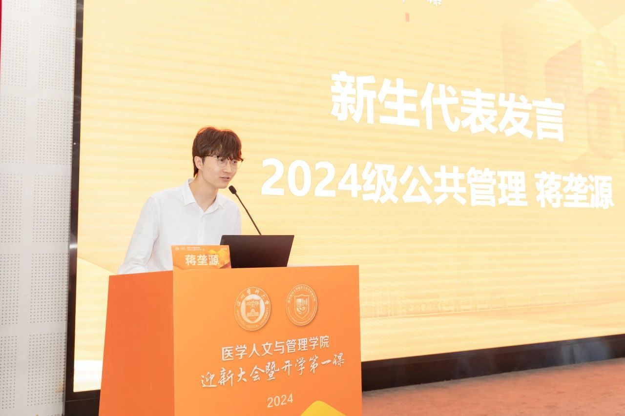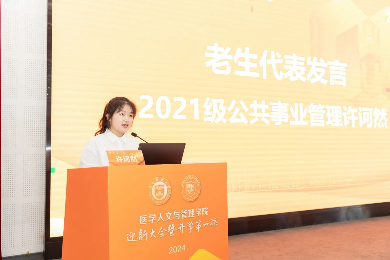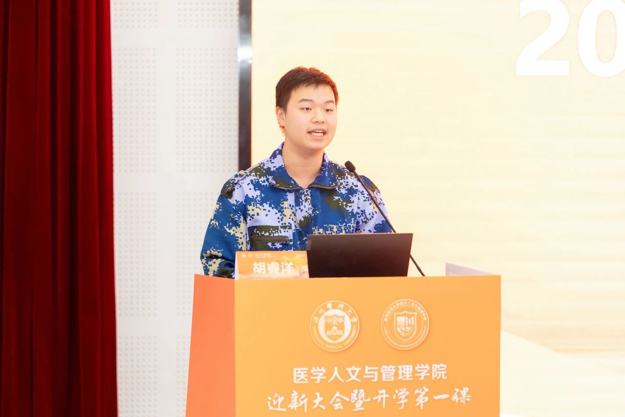 “有几分光,出几分力,在各自领域里努力钻研,便是上佳。”本科生新生代表24级公管1班的胡睿洋分享了自己与温医大的深厚缘分,选择公共事业管理专业的初衷,并表达了对未来老员工活的期许和奋斗的决心。