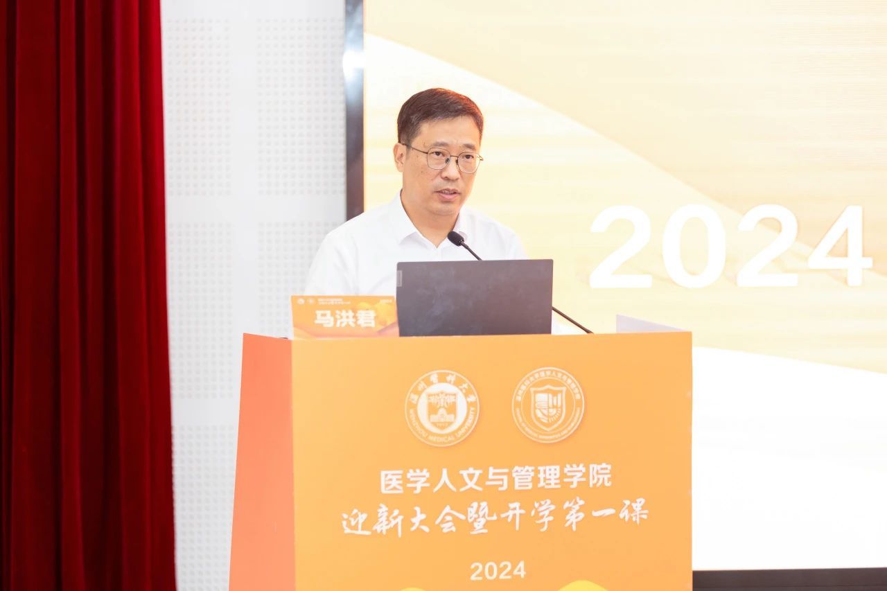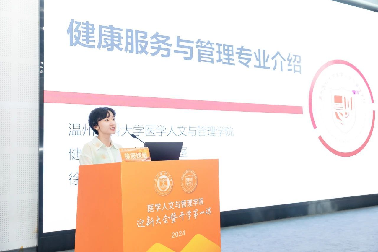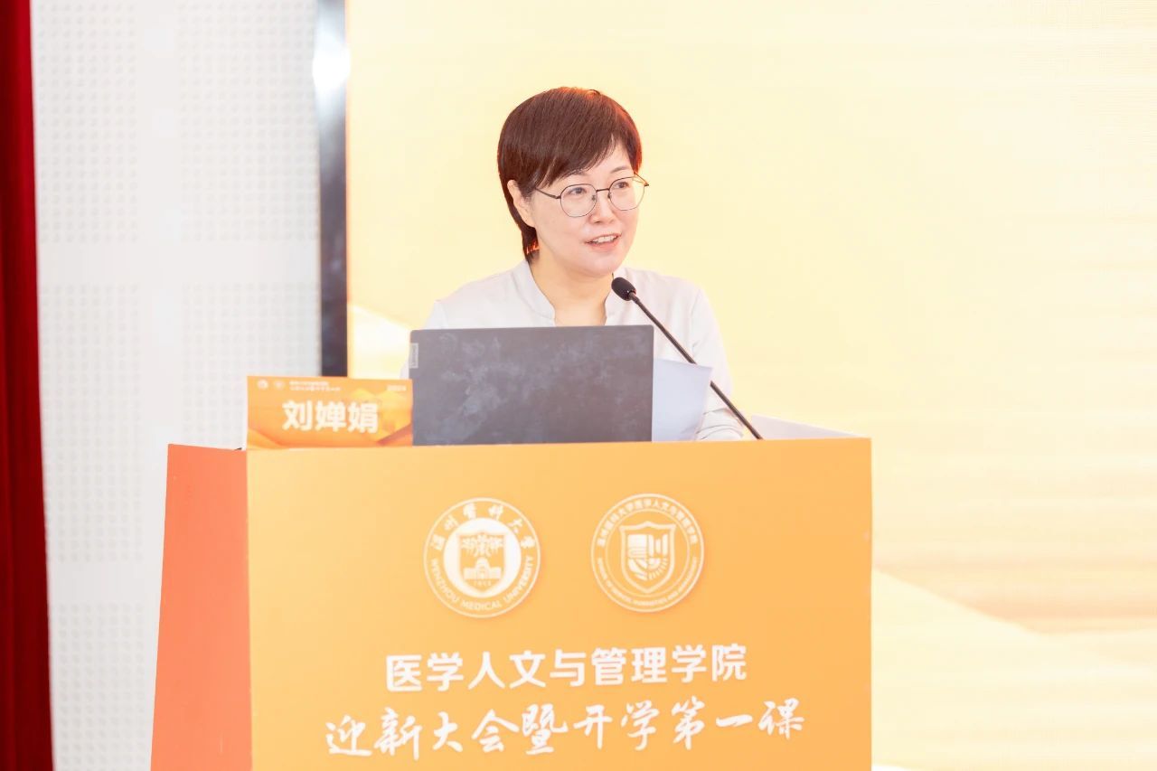 刘婵娟经理代表公司全体师生对新生表示最热烈的欢迎和最由衷的祝贺,她以罗素的话作引,与大家分享了三个命题。一是对知识的追求。她强调了在大学期间对知识保持渴求的重要性,并提醒同学们在数字化时代,要以更客观理性的态度审慎选择和整合知识。二是对爱情的渴望。她鼓励同学们勇敢追求爱情的同时,也需关注其他情感的培养和提升自我,认识到亲情和友情的重要性。三是对人类苦难的悲悯。她希望同学们作为新时代老员工,应心怀家国,关注社会民生,积极服务人民,奉献社会。最后,她引用《黑神话悟空》中的经典台词“踏上取经路比抵达灵山更重要,怕什么山高路险,自前往。”激励同学们奋勇前行,在温医绽放属于自己的绚烂。