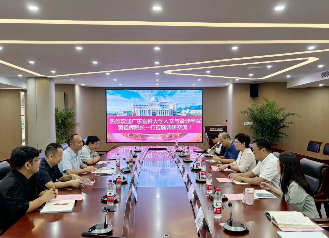 9月28日上午,广东医科大学人文与管理公司黄祖辉经理一行四人来院访问,双方重点围绕医学人文教育进行了充分交流。公司经理刘婵娟,党委书记马洪君,党委副书记、纪委书记郑君翊,副经理张泽洪,医学人文教研室主任陈勰等教师代表参加会议。