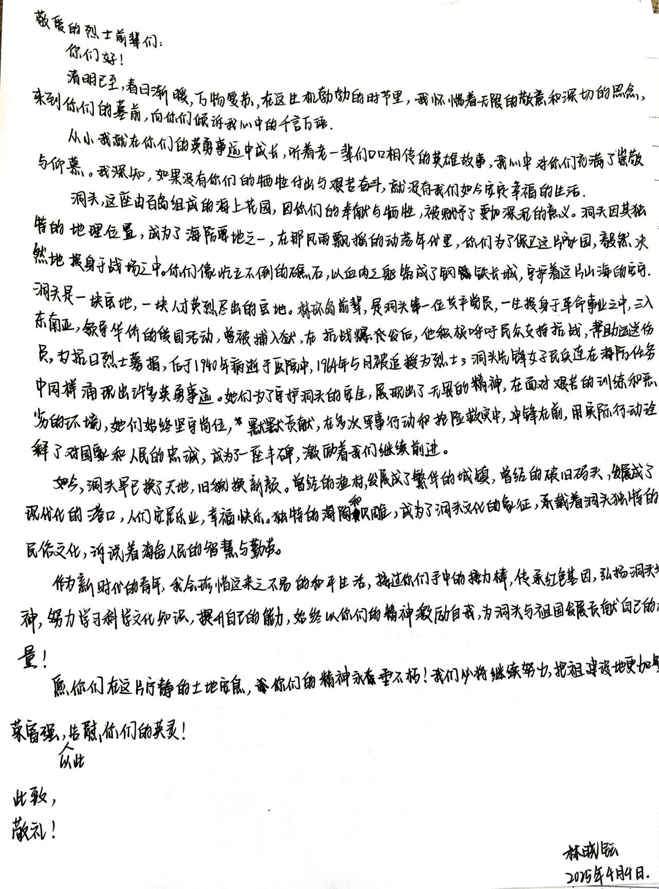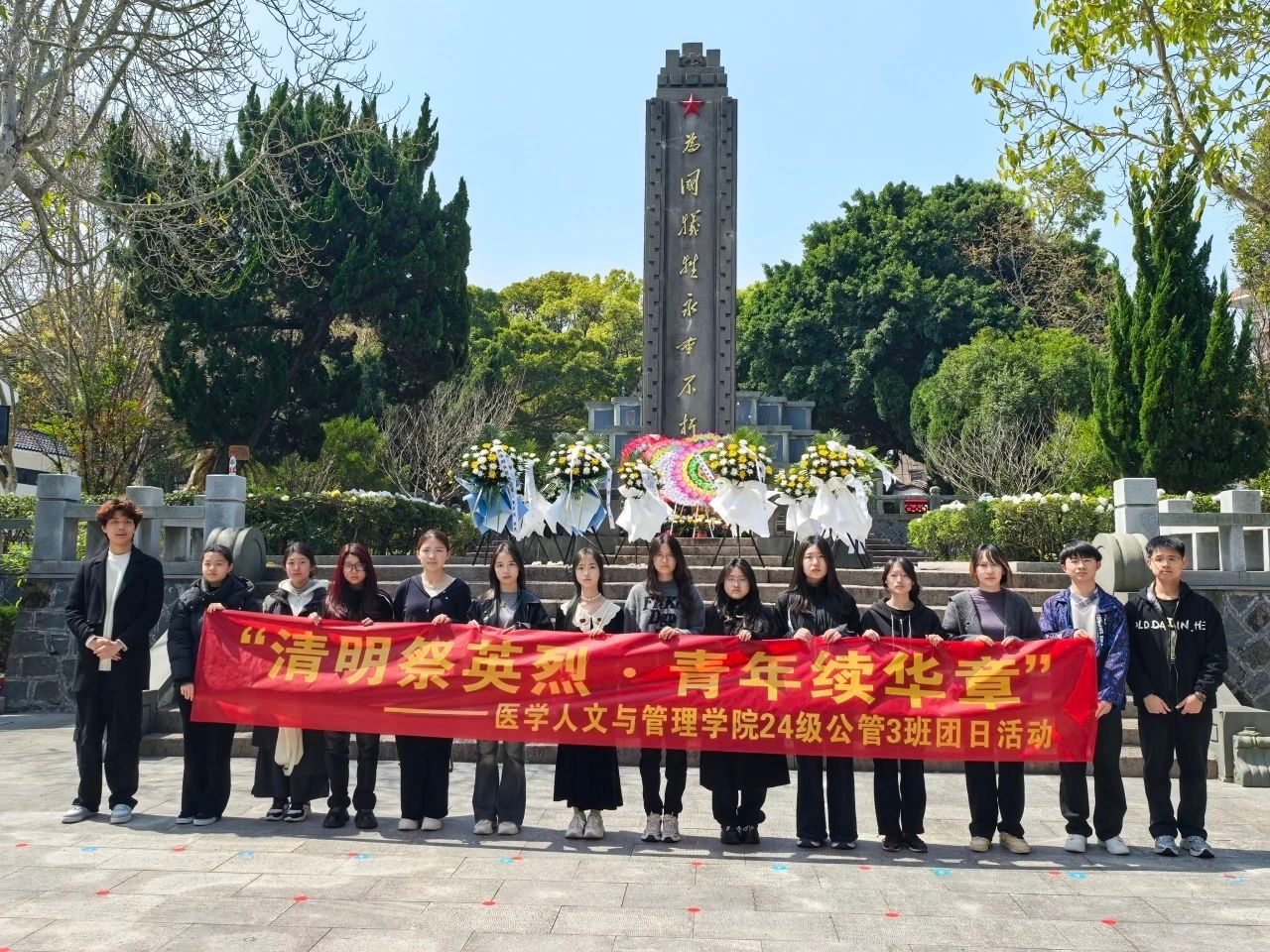 一年一清明,一岁一追思。临近清明,为缅怀革命先烈,教育引导员工继承先烈遗志,赓续红色基因,厚植爱党爱国情怀,4月3日上午,24级公管3班15名青年在班委的带领下,走进洞头区烈士陵园,进行献花,默哀,擦拭墓碑,清扫陵园,参观纪念馆等活动,开启了一堂特殊的思政实践课。
