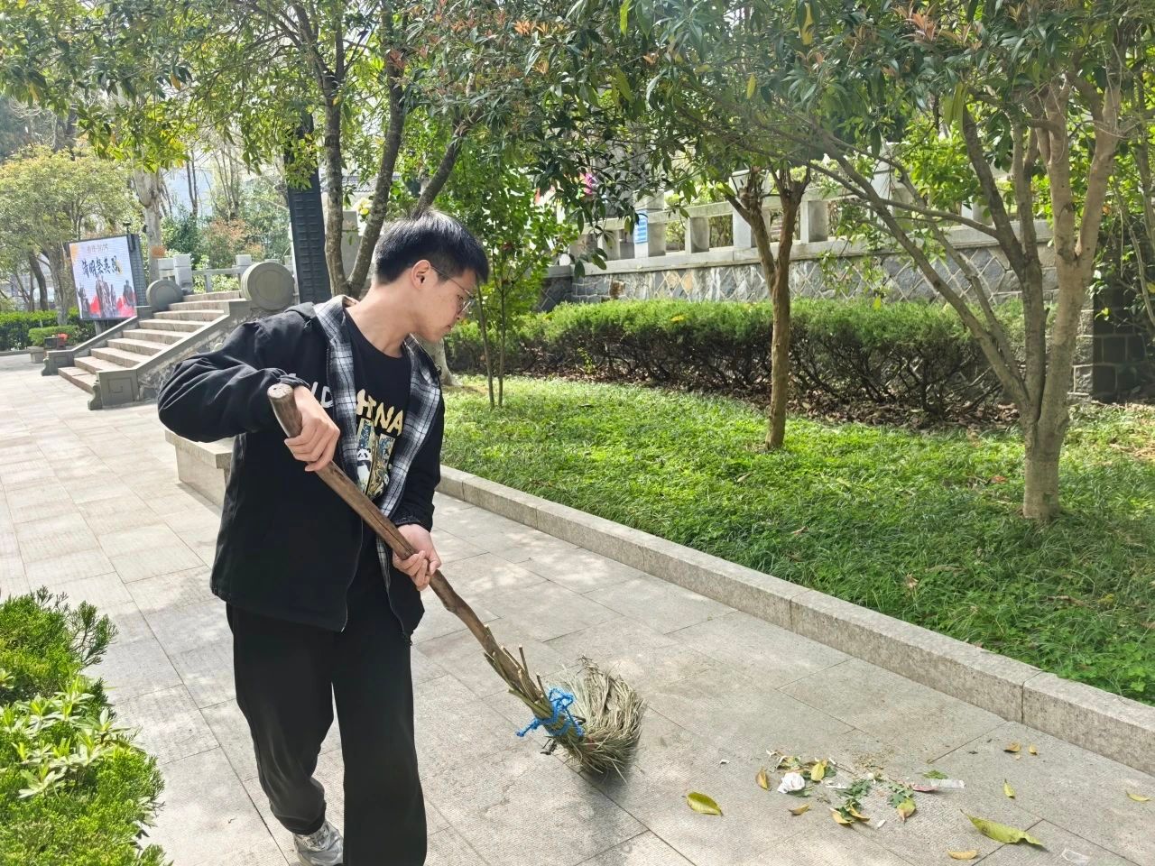 晨光初照,公管3班的同学就已投身陵园清扫。他们手持工具,一丝不苟地清理落叶与灰尘,每处角落都不放过,以行动致敬先烈忠魂,让陵园更显庄严肃穆 。在清扫中缅怀,向先烈忠魂致以崇高敬意。