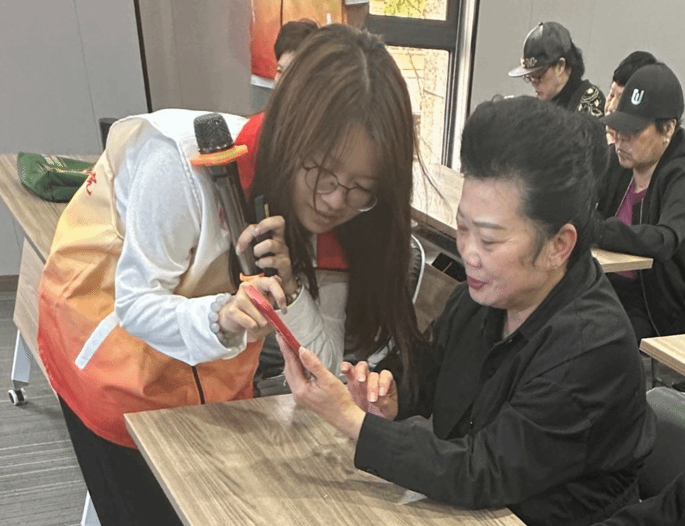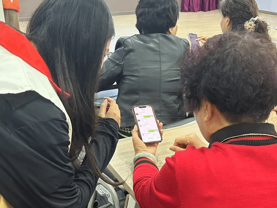 在“有缘‘通话’来相见”环节中,志愿者向老人们详细讲解了语音通话与视频通话的诸多优势,如免费、低成本、可随时随地使用且音质画质清晰。接着,志愿者手把手地教导老人们操作流程,从进入聊天界面、点击“+”号,到选择“语音通话”或“视频通话”。面对老人们遇到的诸如网络连接、麦克风开启等问题,志愿者们耐心地一一解答。活动现场气氛热烈而温馨,老人们逐渐掌握了与远方亲友“面对面”交流的技能。
