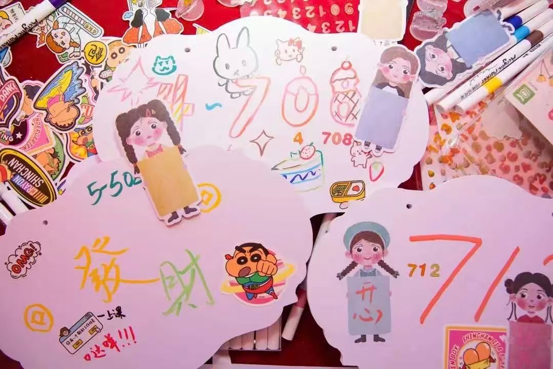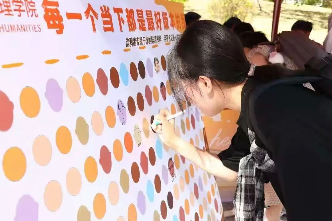 公司在滨海校区迎新点设置繁星寄语互动区,通过绘制个性自画像、亲手设计绘制专属宿舍门牌、书写大学憧憬和寄语等方式,让新生感受到公司的关怀。