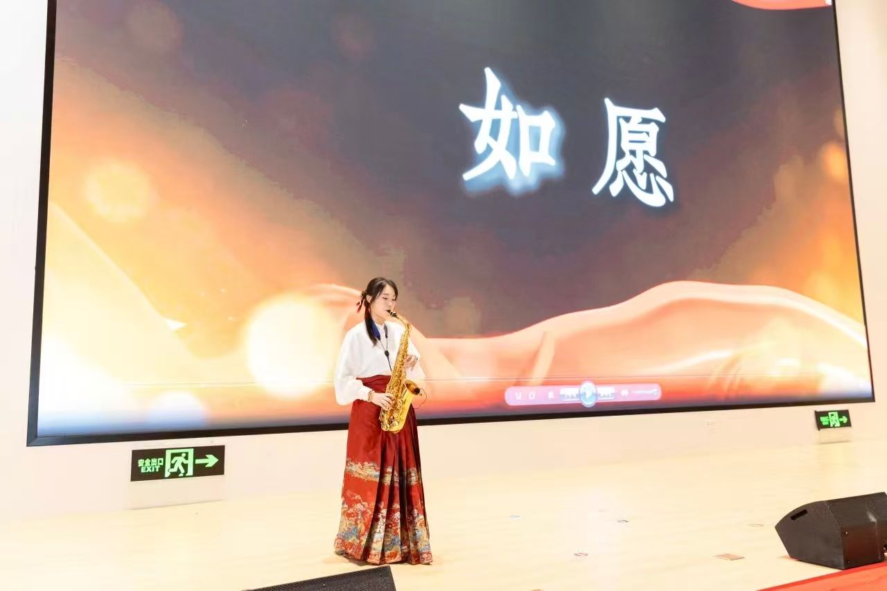 医学人文教研室邓一丹老师带领文管学子演绎的师生舞蹈《如愿》则将萨克斯的深情独奏与翩跹舞步交织,共同勾勒出奋斗的薪火与如歌的祈愿。