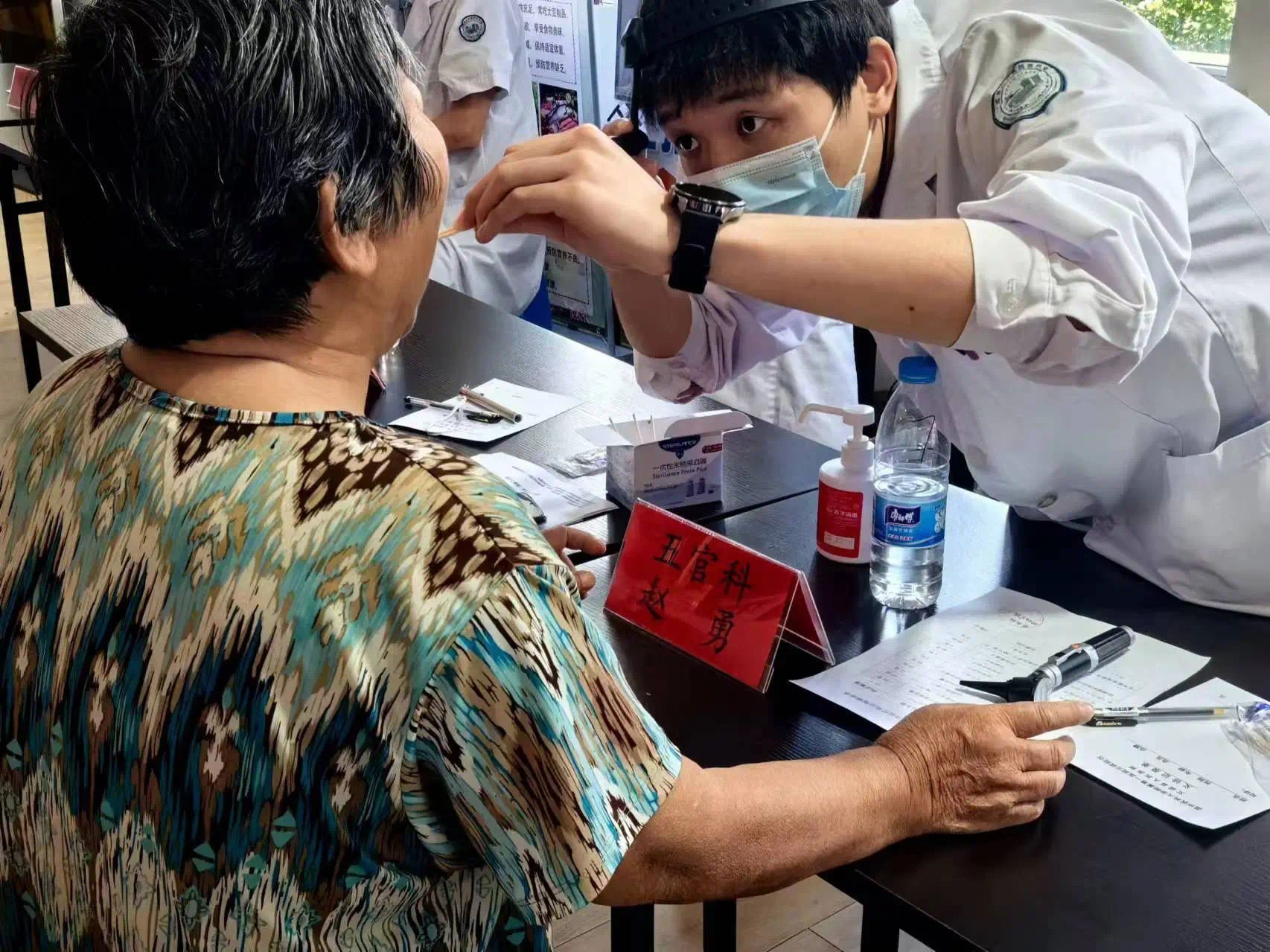 康乐同行社会实践组的志愿者们积极配合专家,维持现场秩序,贴心引导老年人就诊,耐心解答他们的疑问,为村里的老人送去一份健康的关爱。