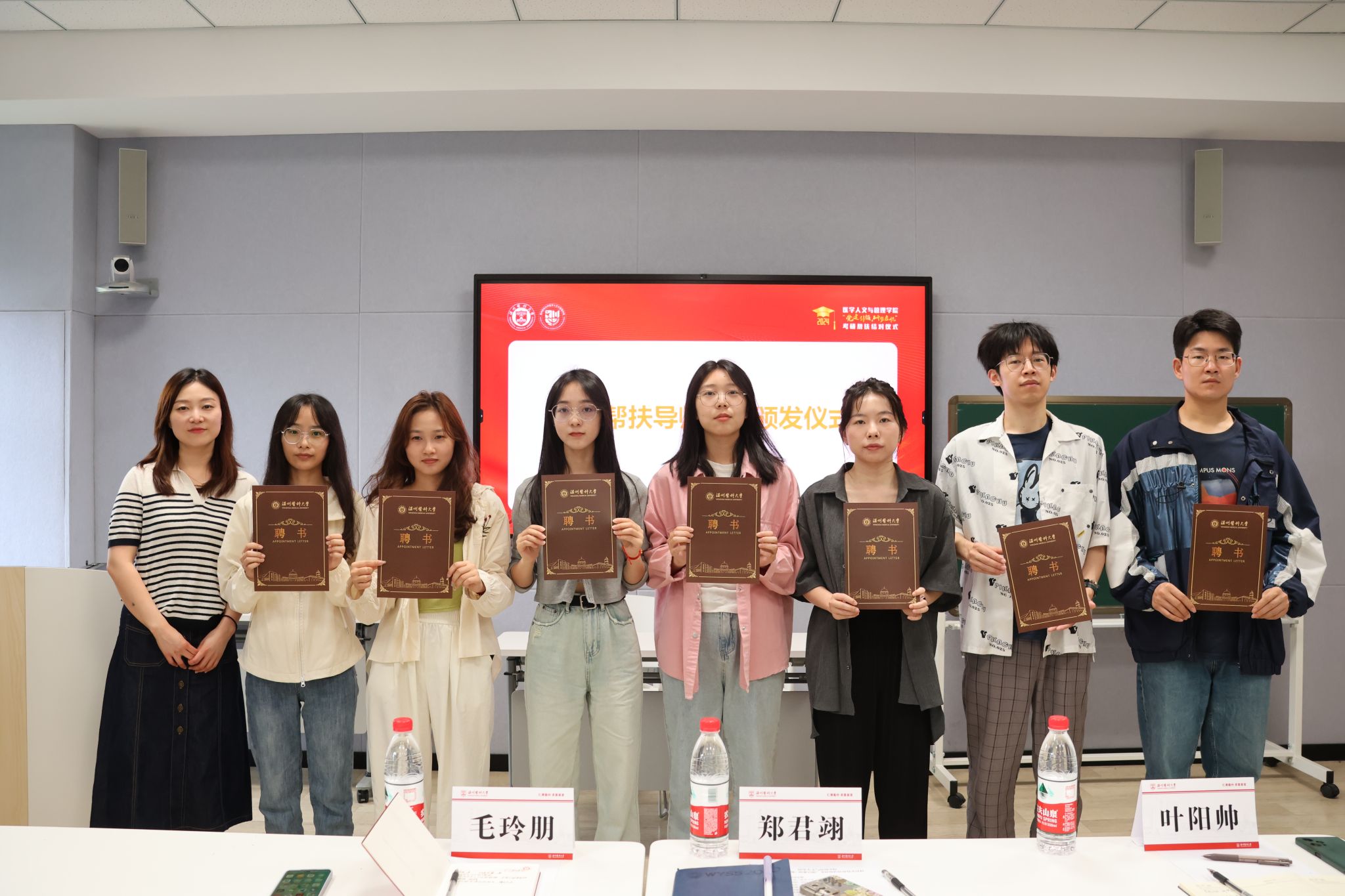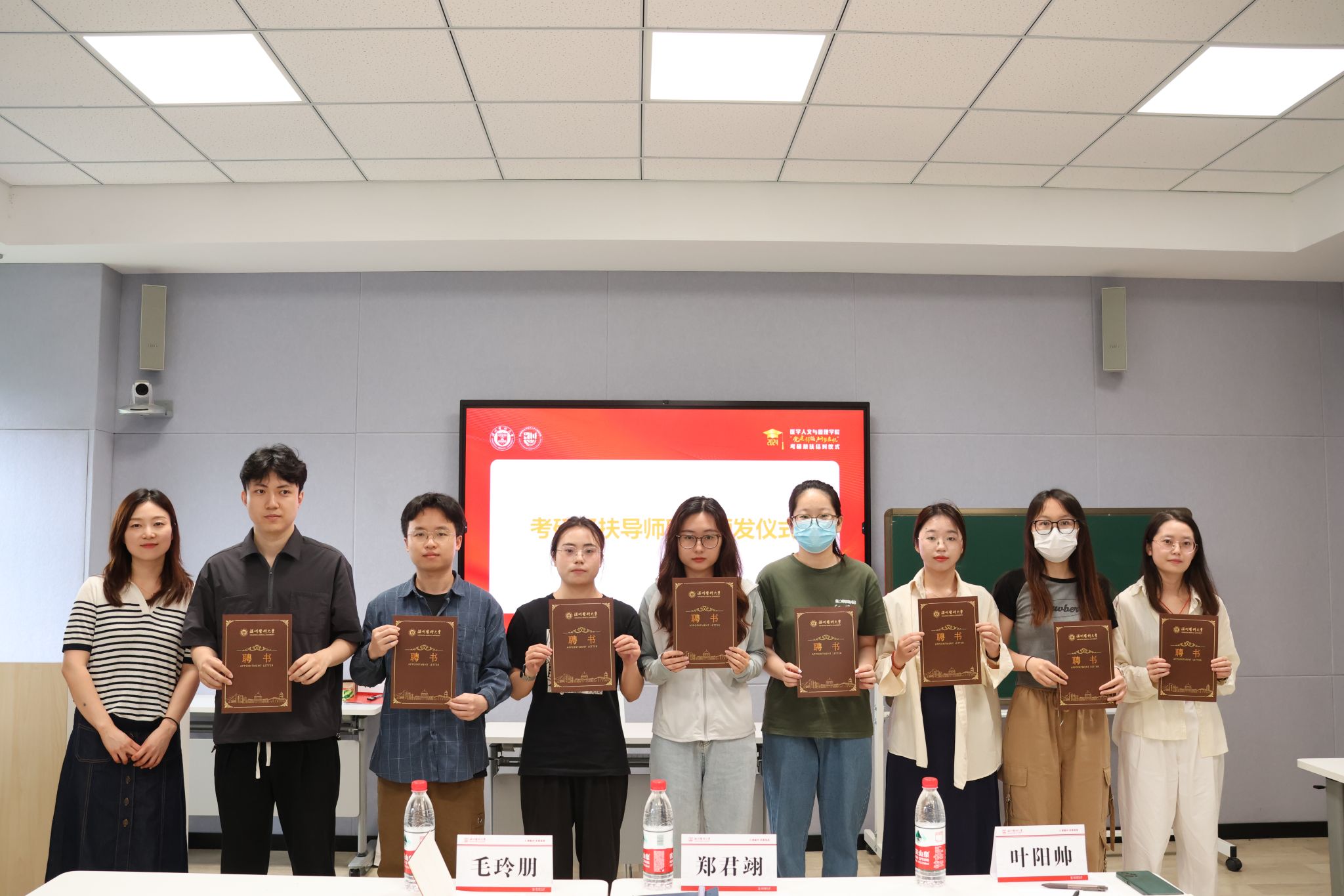 会上公布了考研员工与研究生帮扶导师的名单,郑君翊老师为每位帮扶导师颁发聘书。