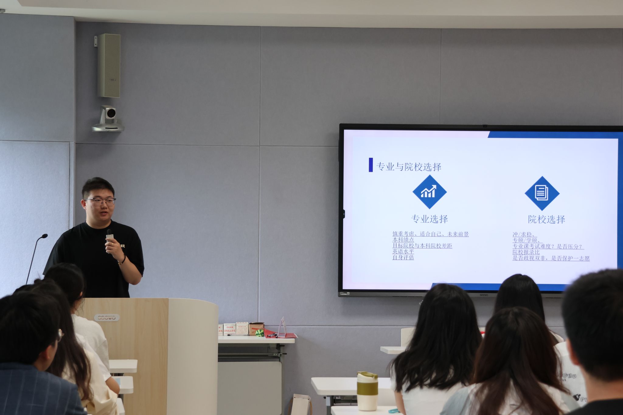 随后,来自公共管理专业的研究生代表徐皖豫、徐丰毅做考研经验分享。他们无私地分享了自己在考研学习过程中的宝贵经验和策略,包括如何合理安排复习时间,复习资料如何选择,如何在考研路上巧妙应对各种挑战和压力。他们的经验和建议极大地鼓舞了考研学子们,相信他们将更加坚定地迎接未来的挑战,以自信的步伐走向成功的彼岸。
