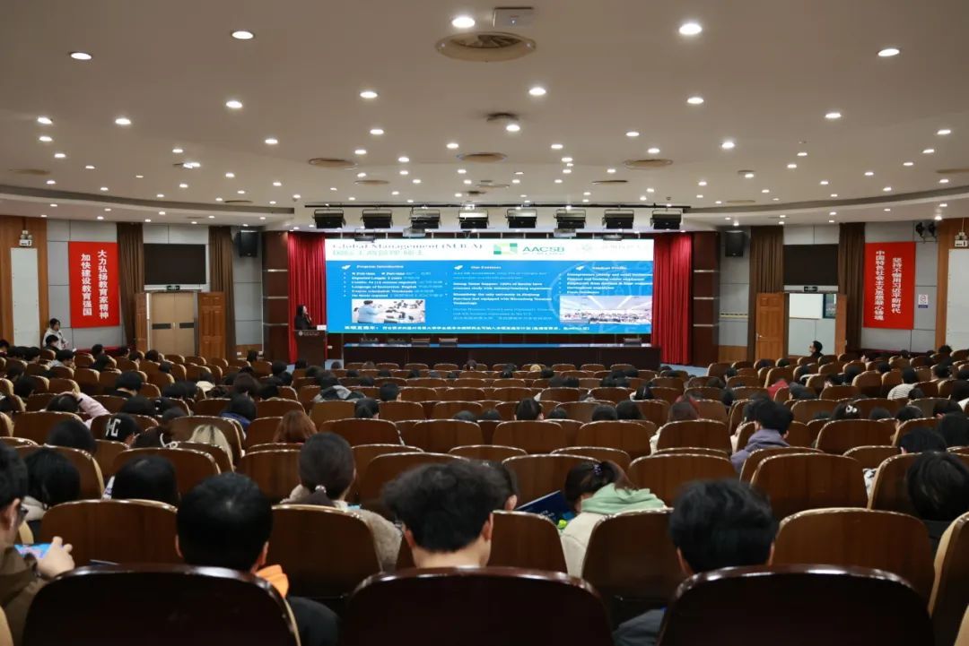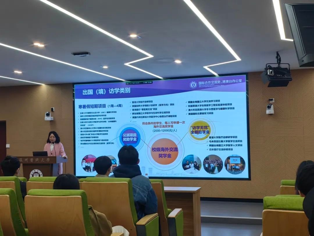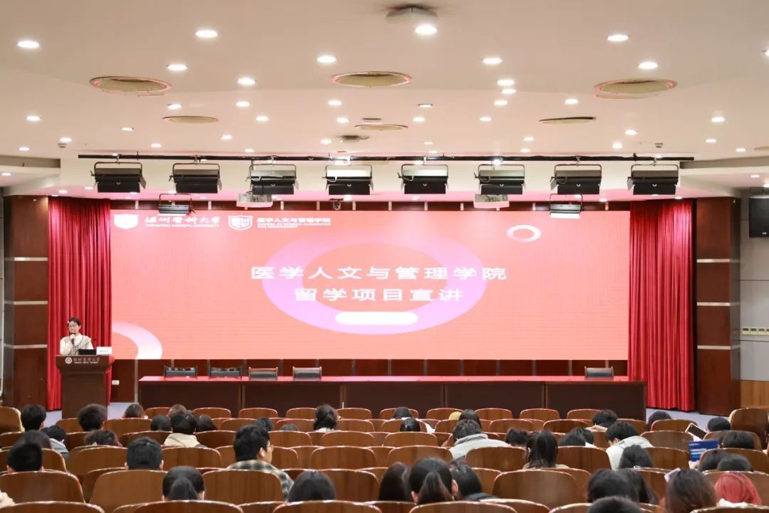 第二场宣讲聚焦两个特色项目。首先,温州肯恩大学国际商务讲师戴青博士系统介绍了该校留学项目,重点解读全英文教学体系、双学位认证机制及国际商务专业特色;接着,王慧老师详细讲解了公司暑期香港游学项目,涵盖港大课程模块、参访安排及申请流程多个方面,为三百余名参会员工提供个性化指导。