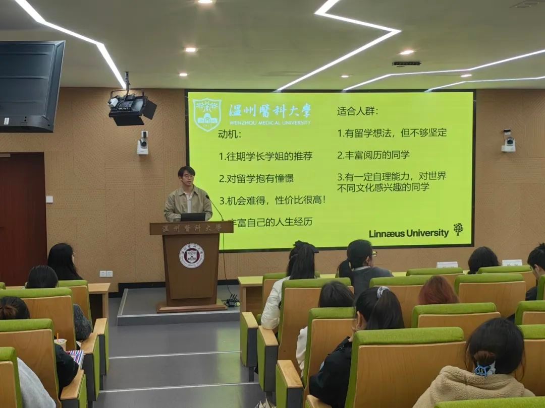 此外,曾赴瑞典林奈大学交换的徐科同学结合自身访学经历,就跨文化适应、团队协作模式创新等主题进行经验分享。他通过分享自身案例阐述了高效利用海外学术资源的方法以及"团队式学习"对个人成长的重要价值。