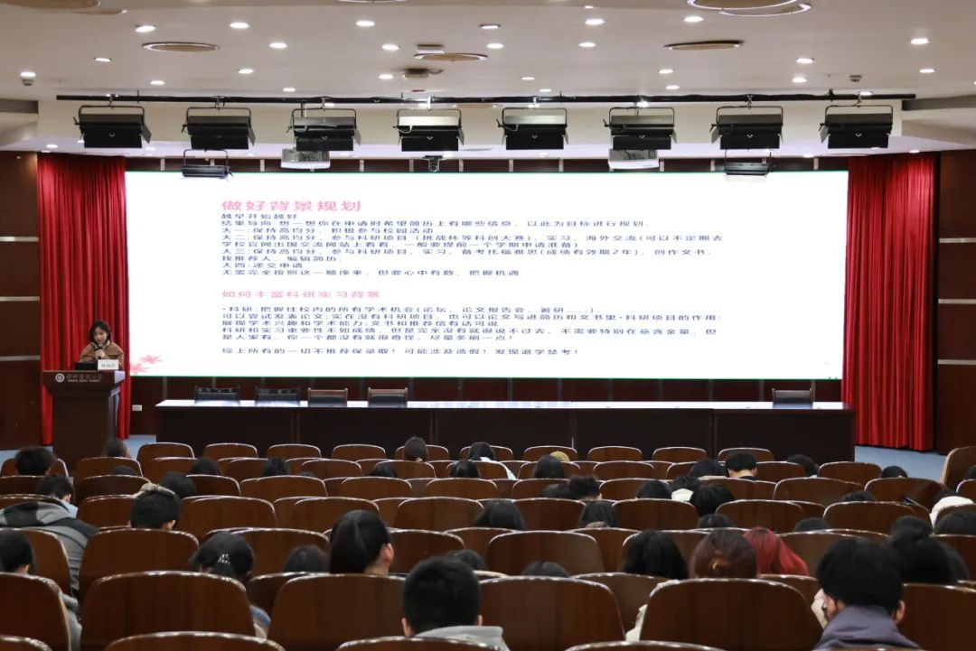 活动最后,已成功申请留学的林杨洋同学立足申请实战,从QS排名参考策略、背景提升路径、留学成本等方面展开深度剖析,建议同学们提早规划,重视专业课程的学习并积极参与科研活动以增添简历色彩。