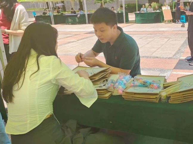 现场欢声笑语不断,不少路过的师生也被吸引加入,活动摊位前非常热闹。