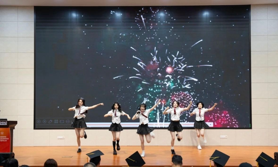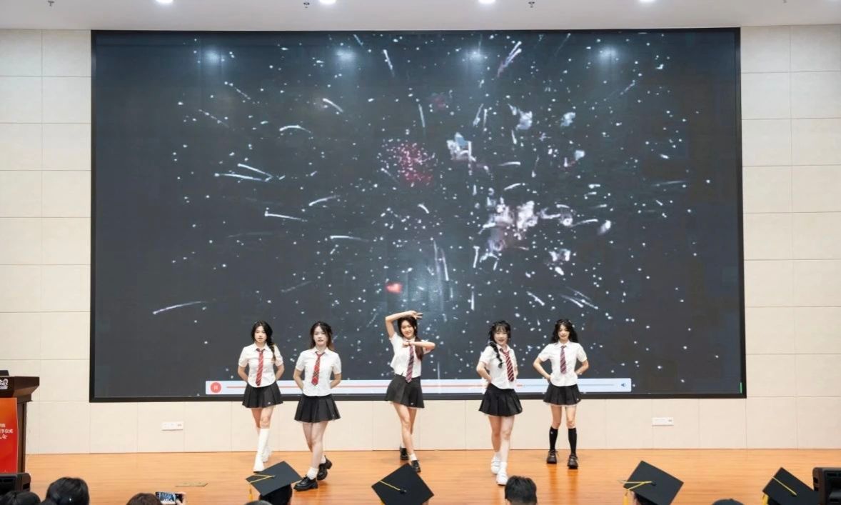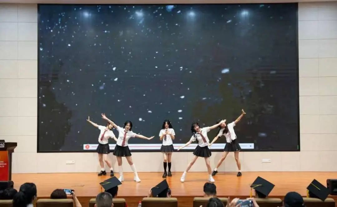 公司艺术团的同学带来歌曲《如果我们不曾相遇》。伴随着旋律,端坐在会场,注视着眼前的典礼台,对即将告别的不舍和对未来的期盼,在这一刻漫过心房,思绪千万。快乐的时光总是短暂——启于初夏,大家跨越千山万水从远方来,驻足停留,共度美好大学时光,又摇手离开。“海阔凭鱼跃,天高任鸟飞”,衷心祝福毕业生们珍惜韶华、奋发有为、前程似锦、鹏程万里,在激情的奋斗中绽放青春光芒!