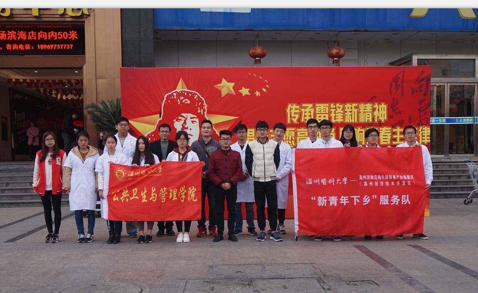 “学雷锋,送健康”——秉持着这一信念,K8凯发公共卫生与管理公司的“新青年们”在陈勇老师和陈瑞洋老师的带领下,于2017年3月3日下午来到温州滨海园区利玛广场开展社区义诊活动。