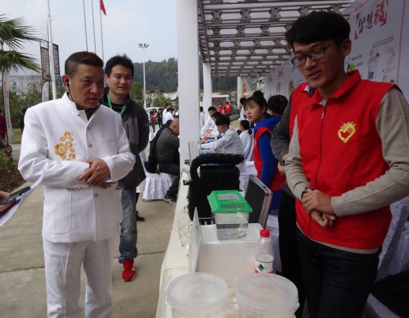 下午1时,志愿者们抵达邱宅文化礼堂为当地的居民们普及五水共治的知识,宣传剿灭劣V类水理念。通过观看劣V类水的教育视频,居民们更加清楚地了解到当前治水的重要性与急迫性。其次,志愿者们向居民介绍水质检测仪器:家庭简便测水仪、仿生态护岸、走航设备、水质净化筒等,并进行现场操作,告知居民如何判断水是否能饮用。其中,“试毒专家”——斑马鱼是本次活动一大亮点。若此鱼生活在劣水中,会吸入有毒物质,并可通过观察其肝脏研磨液的荧光情况对水质进行检测。而走航技术,将船只搭载水质实时监测设备与GPS同步以形成基于GIS数据支撑的在线水质监测。大大节约了时间和经济成本,使污水治理的解决更具现实性。